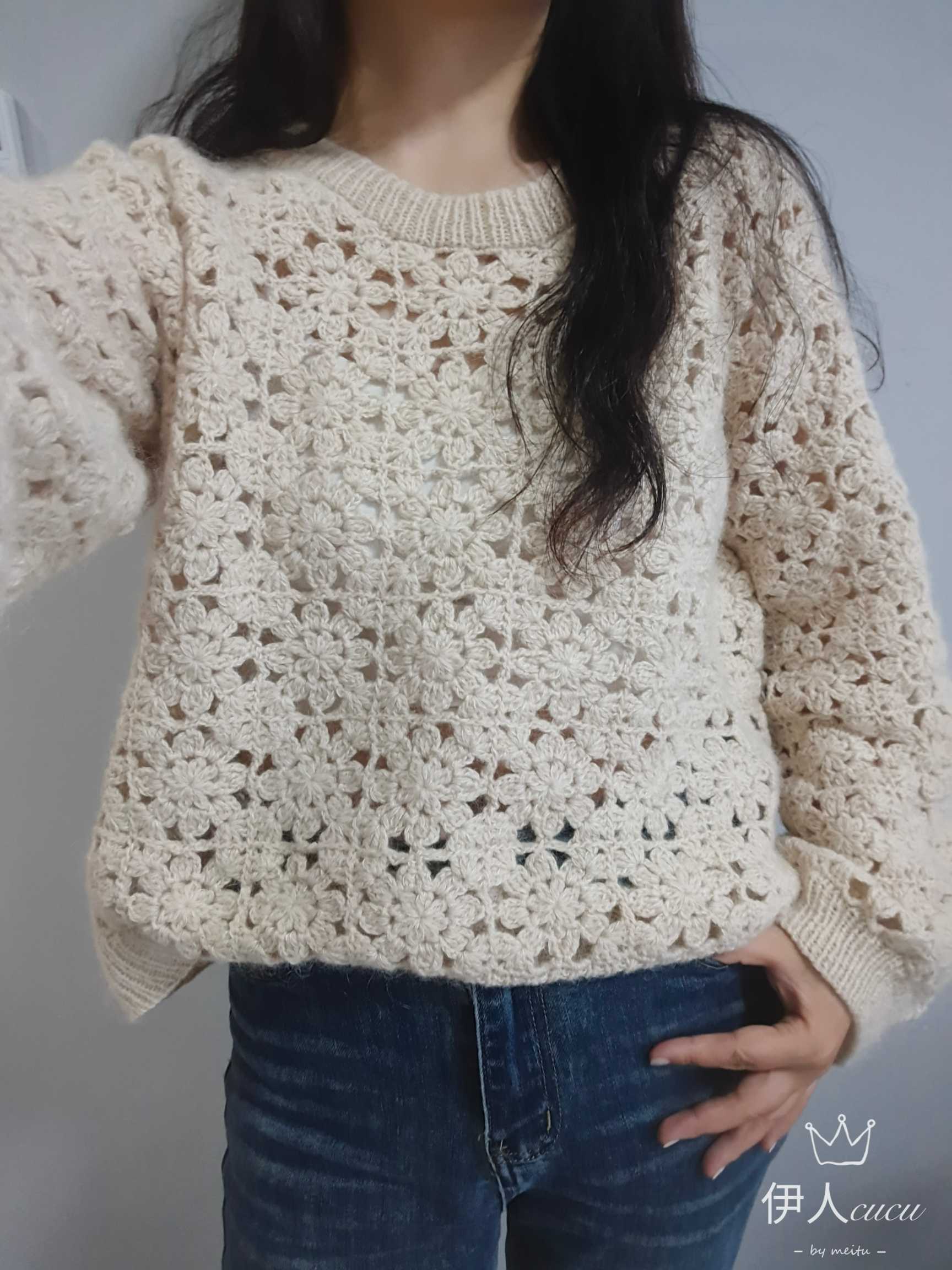 5、【冬冬春春】花朵钩针套头短袖